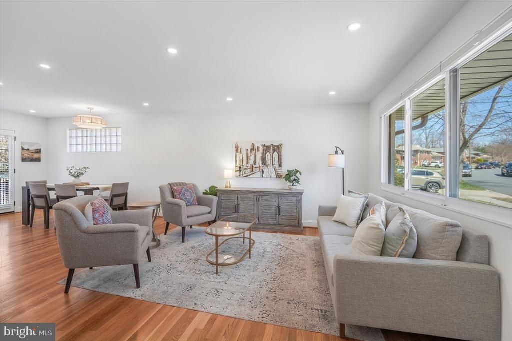 Quietly set along a tree-lined street with sidewalks, this fully renovated home (2023) offers a rare combination of thoughtful design, modern updates, and flexible living. With four bedrooms, a bonus room, and two distinct living areas, the layout is designed to adapt effortlessly to a variety of lifestyles. The main level is bright and welcoming, with a natural flow between living, dining, and kitchen spaces. The kitchen serves as the heart of the home, featuring quartz countertops, stainless steel appliances, and a built-in pantry. Just beyond, a newly constructed deck extends the living space outdoors, overlooking mature trees and parkland just one block away, an ideal setting for quiet mornings or casual entertaining. A separate living area offers a more relaxed retreat, complete with custom built-ins, oversized windows that bring in abundant natural light, and direct access to a private backyard patio. This space adds meaningful flexibility, whether used for lounging, hosting, or creating a dedicated secondary living zone. Upstairs and down, the home offers a sense of separation and privacy, with two distinct primary suite options that provide flexibility for guests, multigenerational living, or a dedicated retreat. Additional bedrooms and the bonus room offer space for a home office, gym, or playroom. Extensive updates provide both comfort and peace of mind, including a new roof (2022), new sewer line (2024), and full HVAC replacement (2024), along with thoughtful interior enhancements like basement cabinetry (2025) and the custom living room built-in (2025). Located just minutes from the Forest Glen Metro and with easy access to I-495, the home balances serene suburban living with city connectivity. Nearby, the historic and antique-rich streets of Kensington offer charming shops, cafes, and cultural character, making this location as vibrant as it is convenient. Thoughtfully updated and ideally situated, 10302 Conover Drive is a residence where craftsmanship, care, and contemporary updates coexist seamlessly with timeless design. Public record reflects total square footage of 2,336. All measurements are approximate. Property details and square footage should be independently verified, and not used for property valuation.