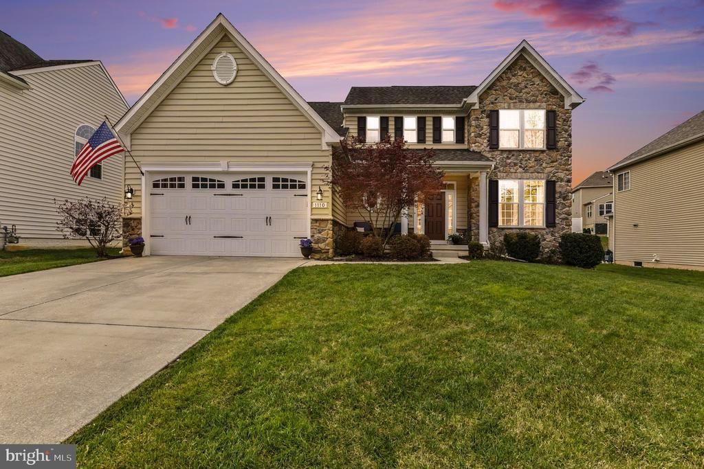 Welcome to 1110 Many Lane, in the very sought-after Kelly Glen Community of Bel Air, Maryland. Boasting over 4,200 square feet of total living space, this beautiful home offers a truly functional layout with room for everyone. Upon entering from the front porch, you’re greeted by a two-story foyer with hardwood flooring. The kitchen features a huge center island/breakfast bar with gorgeous granite countertops, 42-inch cabinets, and brand-new stainless-steel refrigerator and dishwasher, all open to a dining room with a vaulted ceiling and the spacious family room which includes a cozy gas fireplace. The formal dining room and office space are elegantly separated by French doors, for style and functionality. Upstairs, the primary suite boasts two large walk-in closets and an attached spa-like bathroom with soaking tub. The additional 3 bedrooms offer ample closet space and share a full bathroom. Brand new premium carpet and padding installed in 2022 add comfort and style throughout the home. The finished lower level provides a large rec room, a fifth bedroom or office, full bathroom, and an expansive flex space perfect for a home gym, playroom, home theater or additional living area, along with plenty of storage. Outside, enjoy a large patio with pergola, a level rear yard, built-in fire pit and a retaining wall—perfect for relaxing or entertaining.