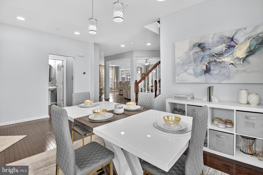 Beautiful contemporary home in a highly coveted Woodmore Towne Centre directly across from the community club house, tennis and pool. This light-filled home features an open floor plan with high ceilings, dramatic columns, hardwood floors, fireplace, and a screened-in porch. The kitchen offers granite countertops, gas cooktop, double ovens, built-in microwave, and a designer tile backsplash. Main-level office and upper-level laundry add everyday convenience, while appealing wall colors enhance the modern feel. The fully permitted lower-level unit generates $1,700/month with a month-to-month tenant—ideal for income or flexible living. Solar panels in place (approx. $18,000 lease balance).Convenient to shopping, dining, and Metro! Subject to third-party court approval (not a short sale) with ratification occurring when presented/accepted and court approval within 21 days.
